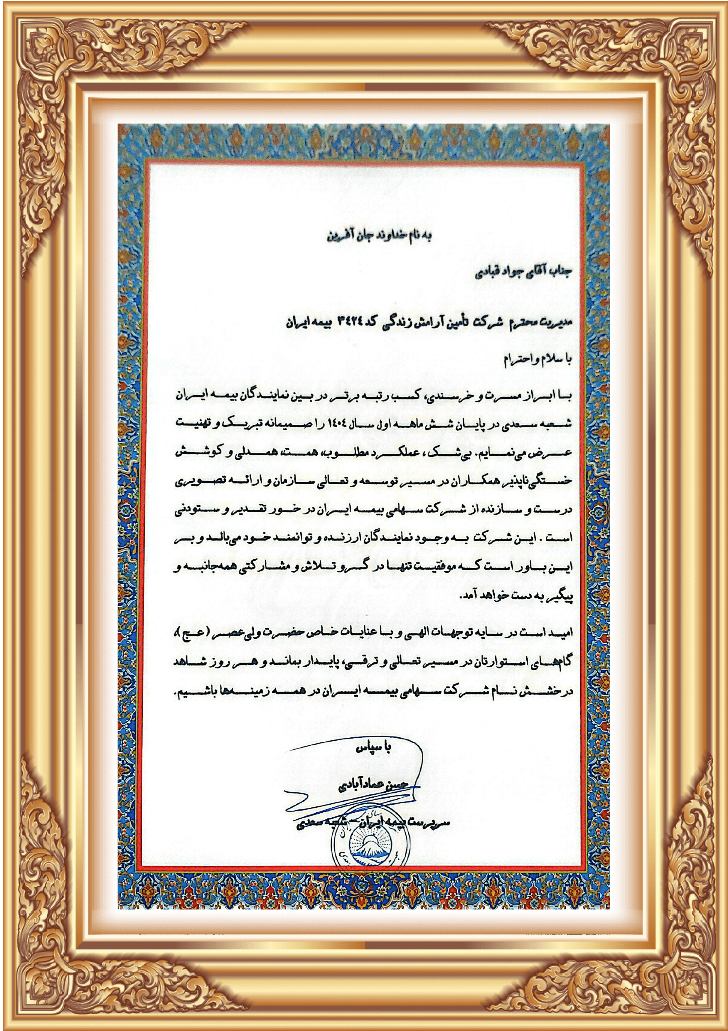 با شماره ثبت ۶۰۹۲۹۶ و نام تجاری "بیمهسرا"، به عنوان نماینده بیمه ایران با کد نمایندگی ۳۴۲۴، با حدود سی سال سابقه فعالیت در صنعت بیمه در تهران خیابان آیت الله کاشانی بین اباذر و مهران پلاک 67 واحد 4 فعالیت میکند . شماره تماس 02144001971